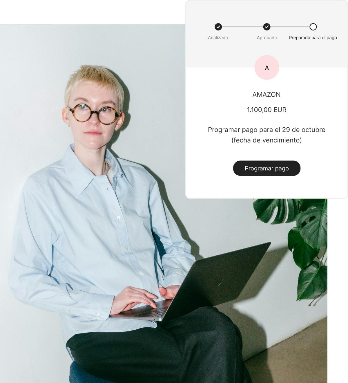 Pleo revoluciona la gestión de facturas automatizando y simplificando el proceso de principio a fin. Tendrás a tu alcance toda la información sobre tus cuentas pendientes, evitarás cometer errores introduciendo datos con el reconocimiento automático de datos y no tendrás que pagar penalizaciones por retrasos. Con Pleo podrás programar y automatizar los pagos para que se realicen a tiempo.