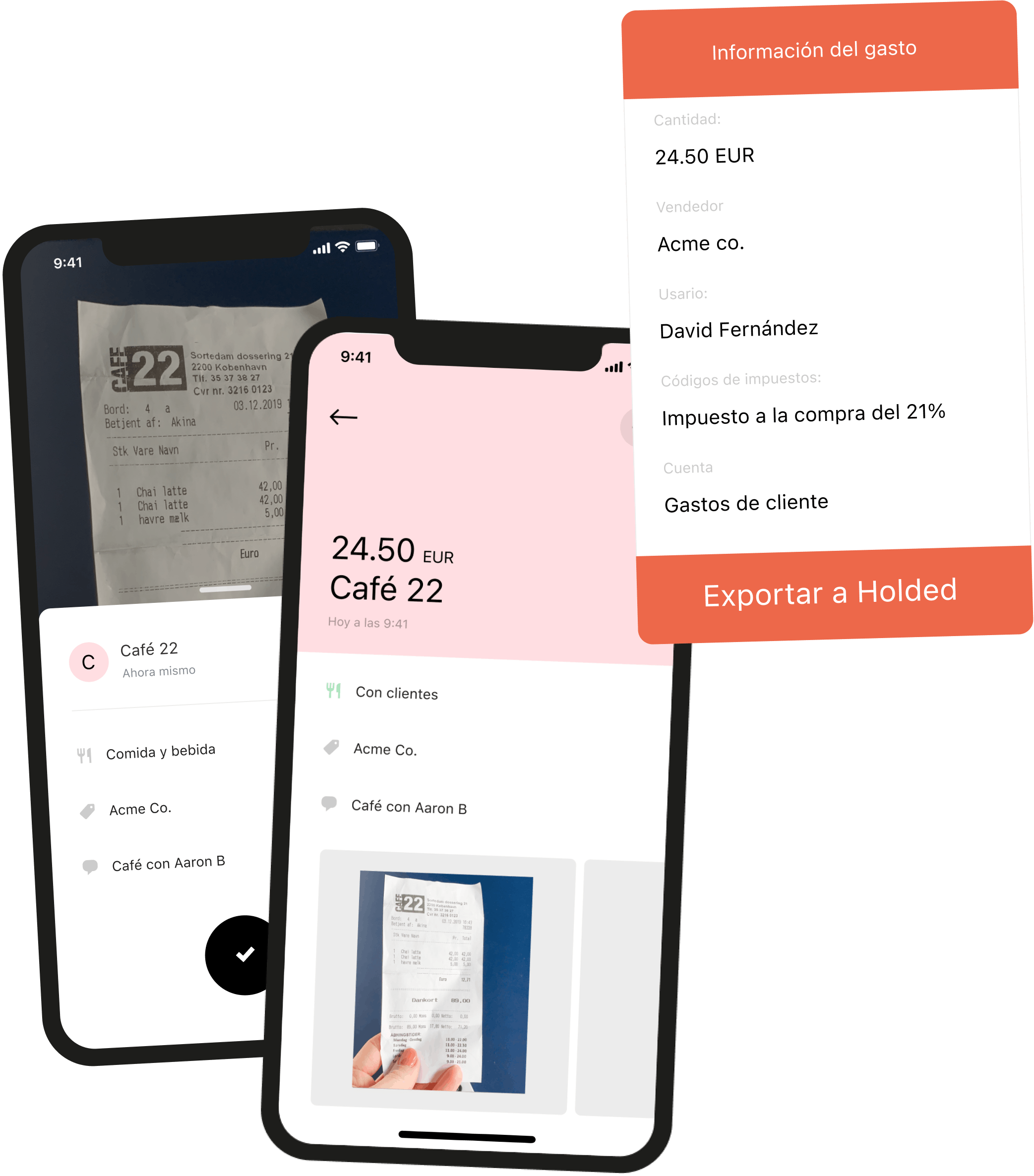 Todos los detalles de tus gastos siempre disponibles. T ú eliges cuándo exportarlos a Holded.