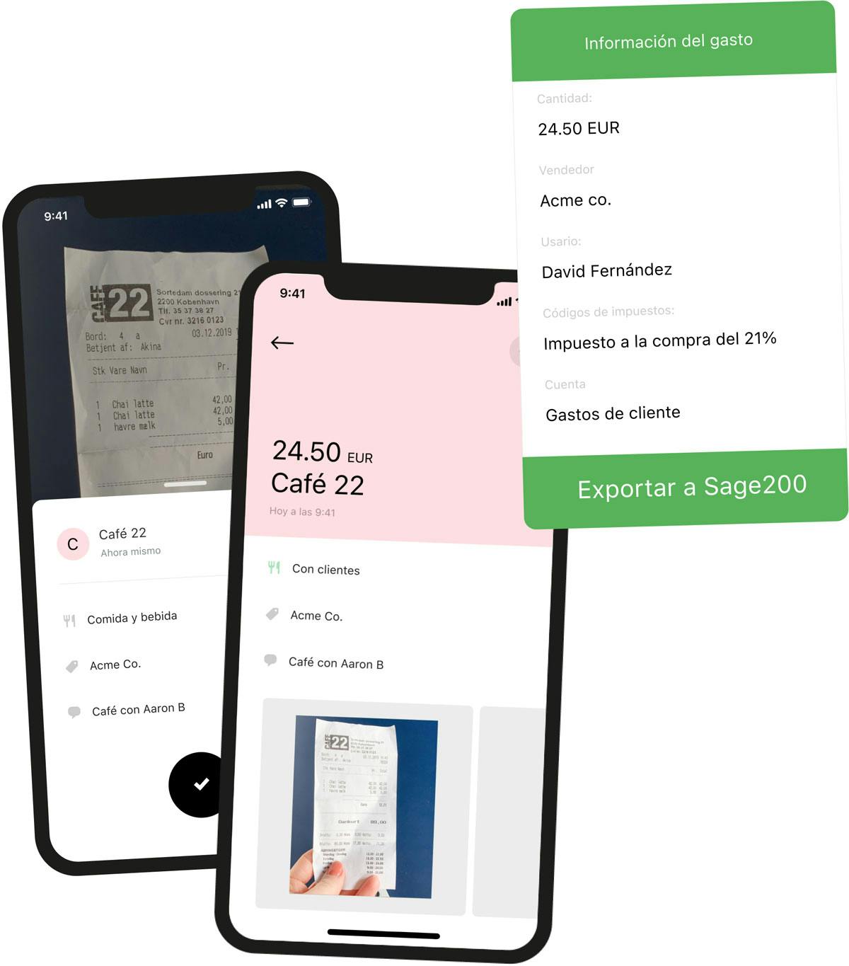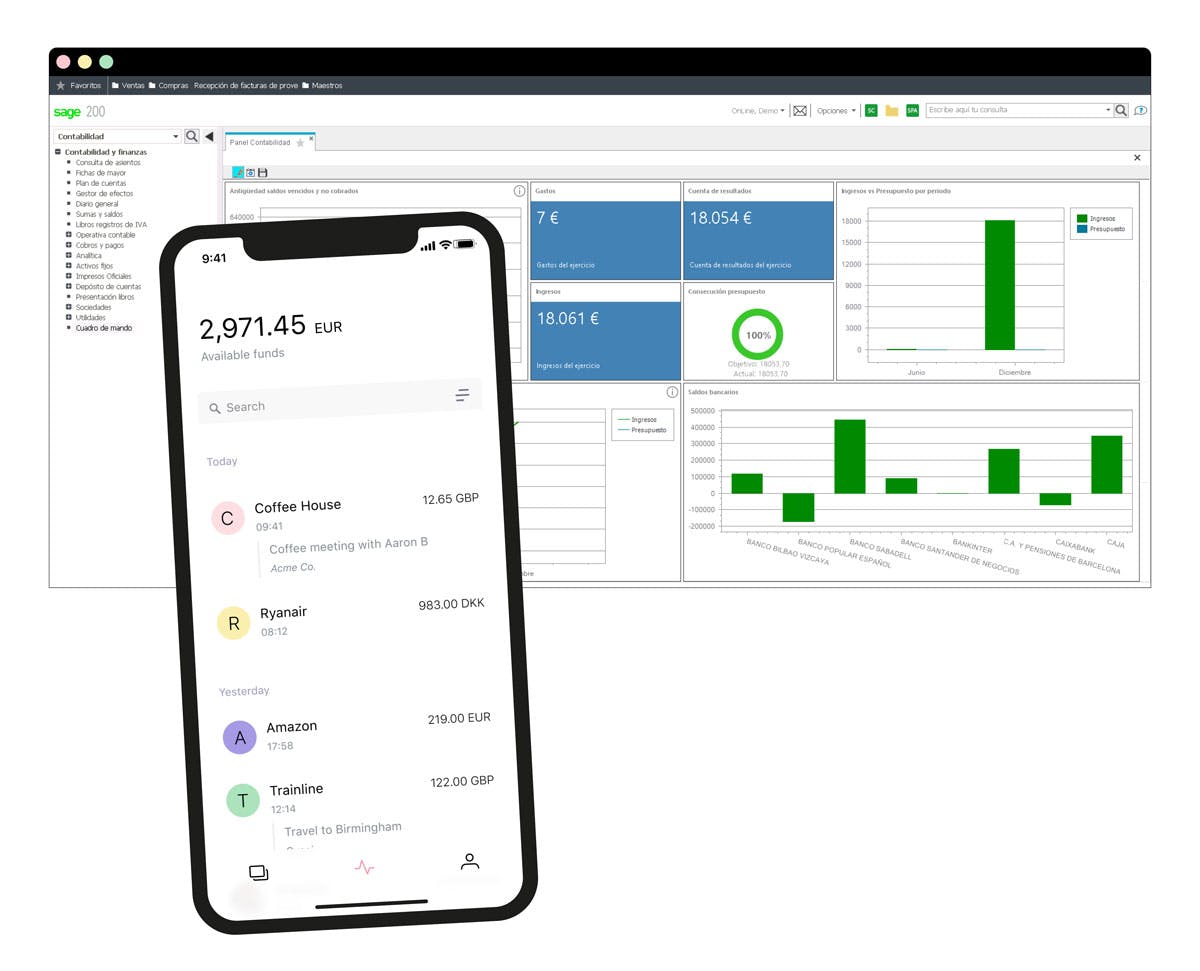 Vuelca la información de tus gastos a Sage 200 para sincronizar tus cuentas contables. Incluye recibos, facturas, códigos de IVA, proveedores y más.