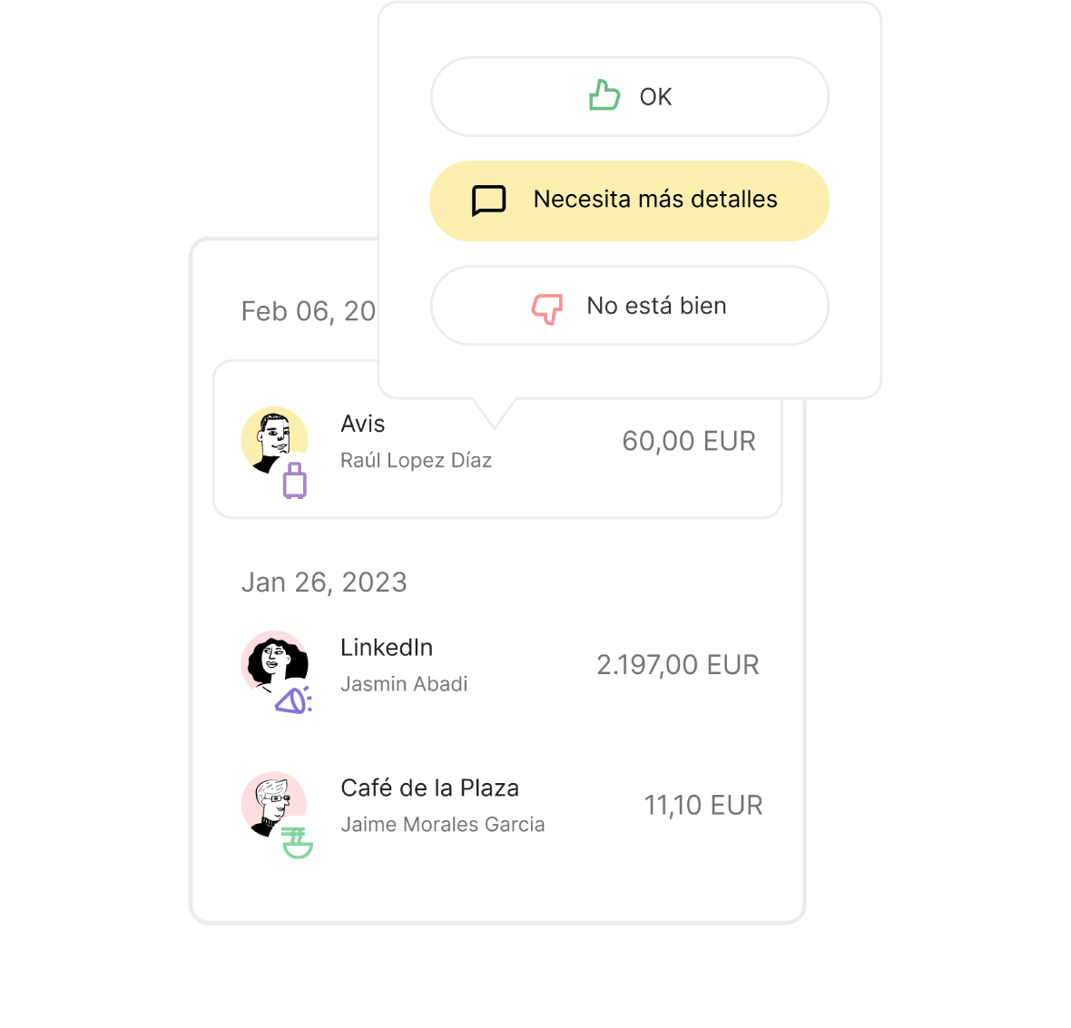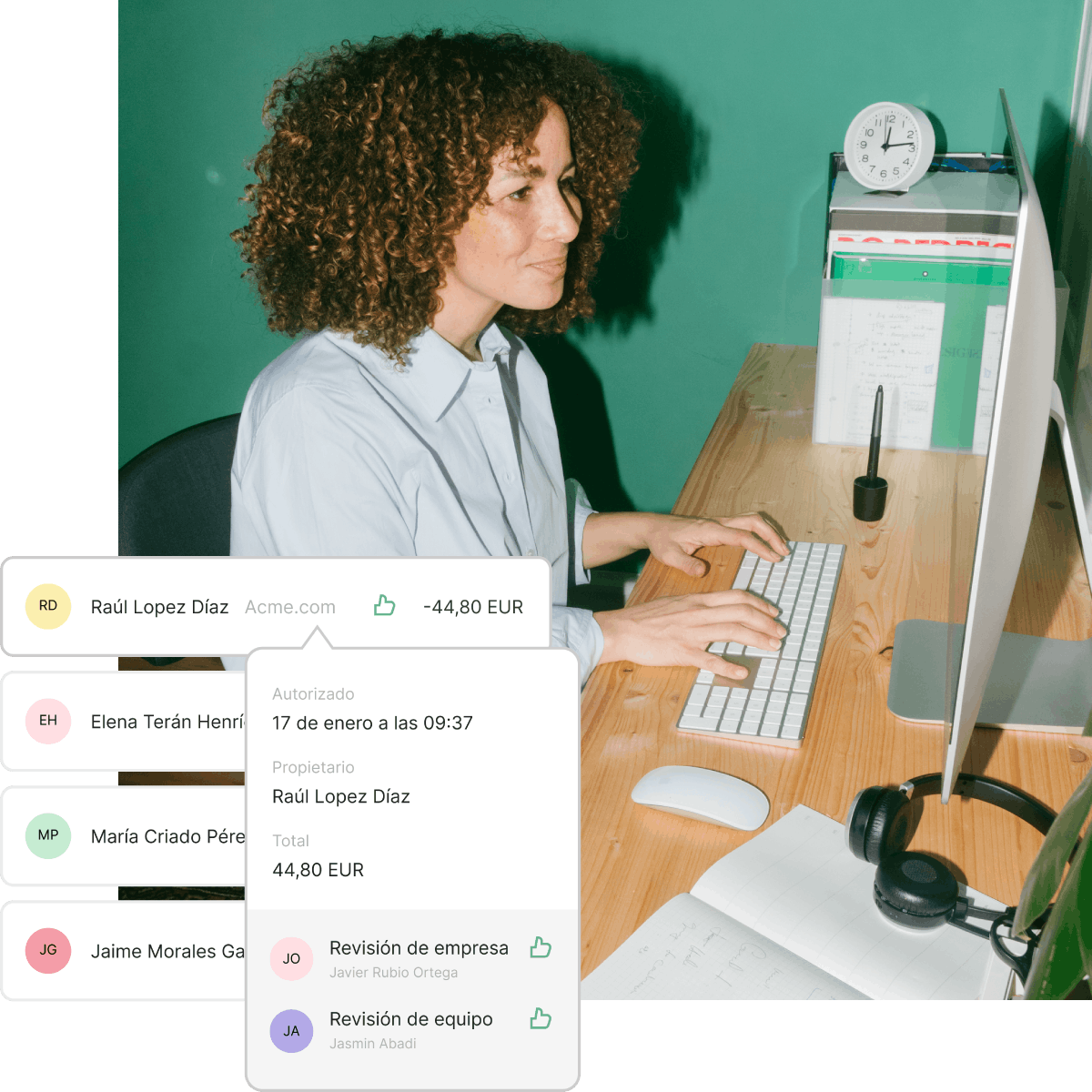 A continuación, puedes crear procesos de aprobación transparentes que te garanticen que ningún gasto pase desapercibido. Revisa y aprueba los gastos con tarjeta y los reembolsos en un solo vistazo o asigna más revisores a aquellos gastos que necesiten un poco más de atención.