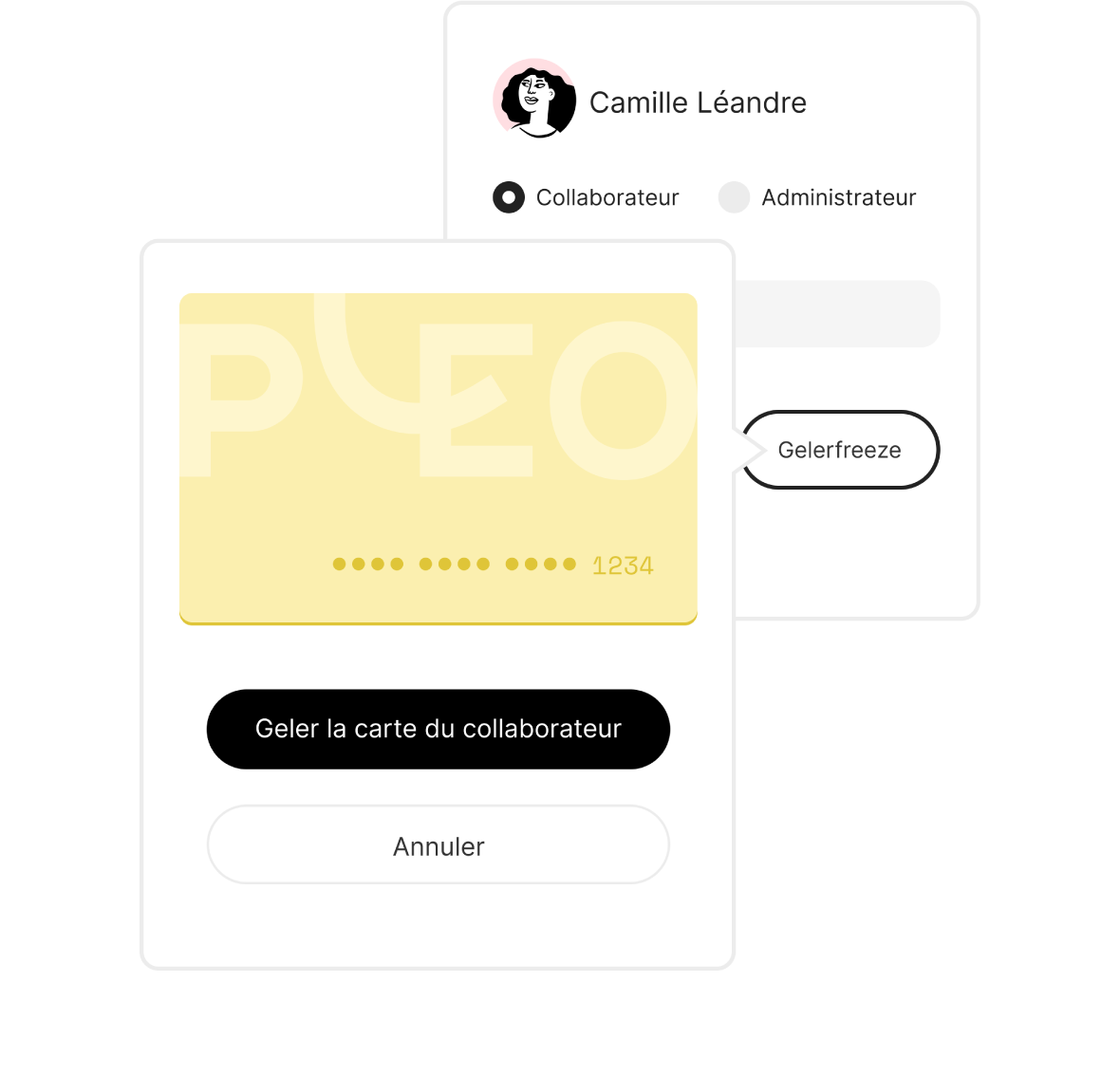 Vous avez fait une erreur ? Aucun problème. Grâce à notre gamme de dispositifs de protection, vous pouvez facilement geler (ou dégeler) des cartes, et même éviter toute dépense suspecte. Si un employé quitte l’entreprise, il vous suffit de supprimer son compte utilisateur Pleo, en seulement quatre clics.