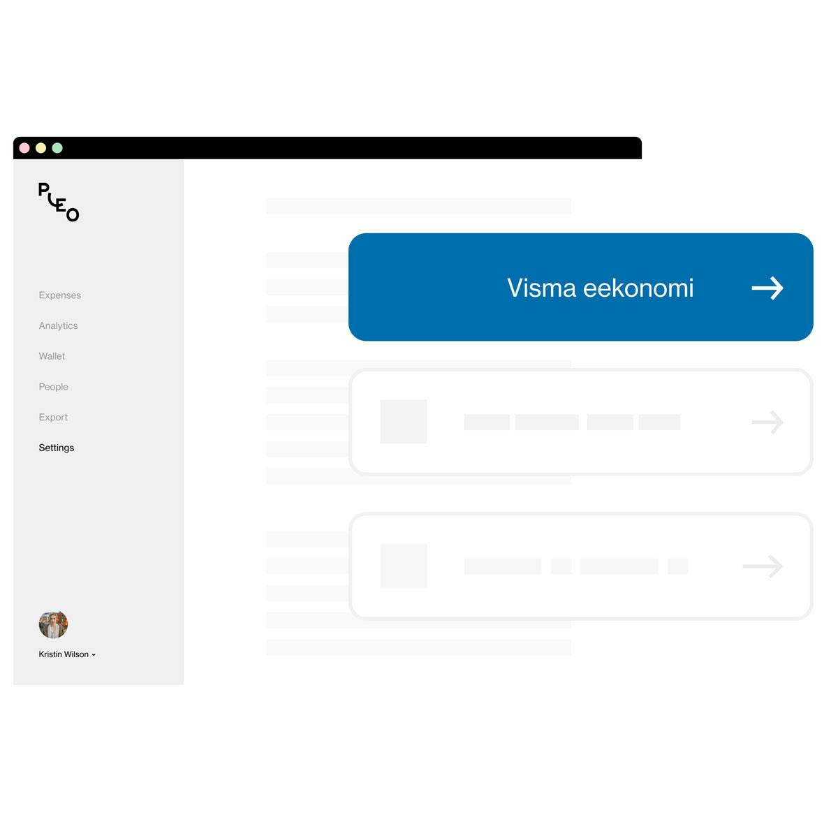 Logga in på ditt Pleo-konto och gå till Inställningar. Välj Visma eEkonomi i Bokföring-listan. Följ instruktionerna på skärmen. Du behöver bland annat ge Pleo tillgång till din data i Visma. Det går fort och du behöver bara gå igenom processen en gång.