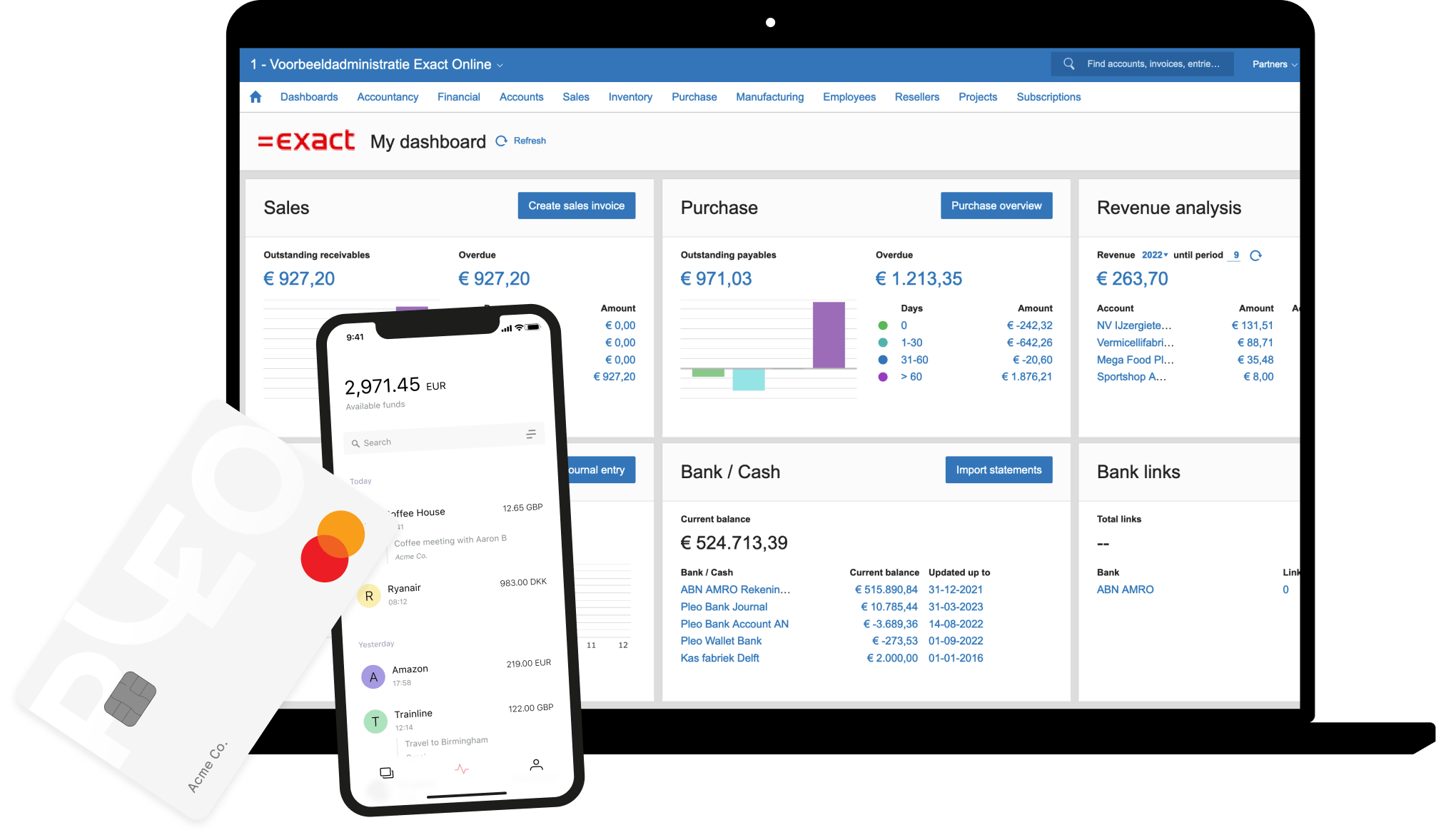 Volledige aankoopgegevens worden aan Exact Online doorgestuurd, zodat ze overeenkomen met je boekhouding.
