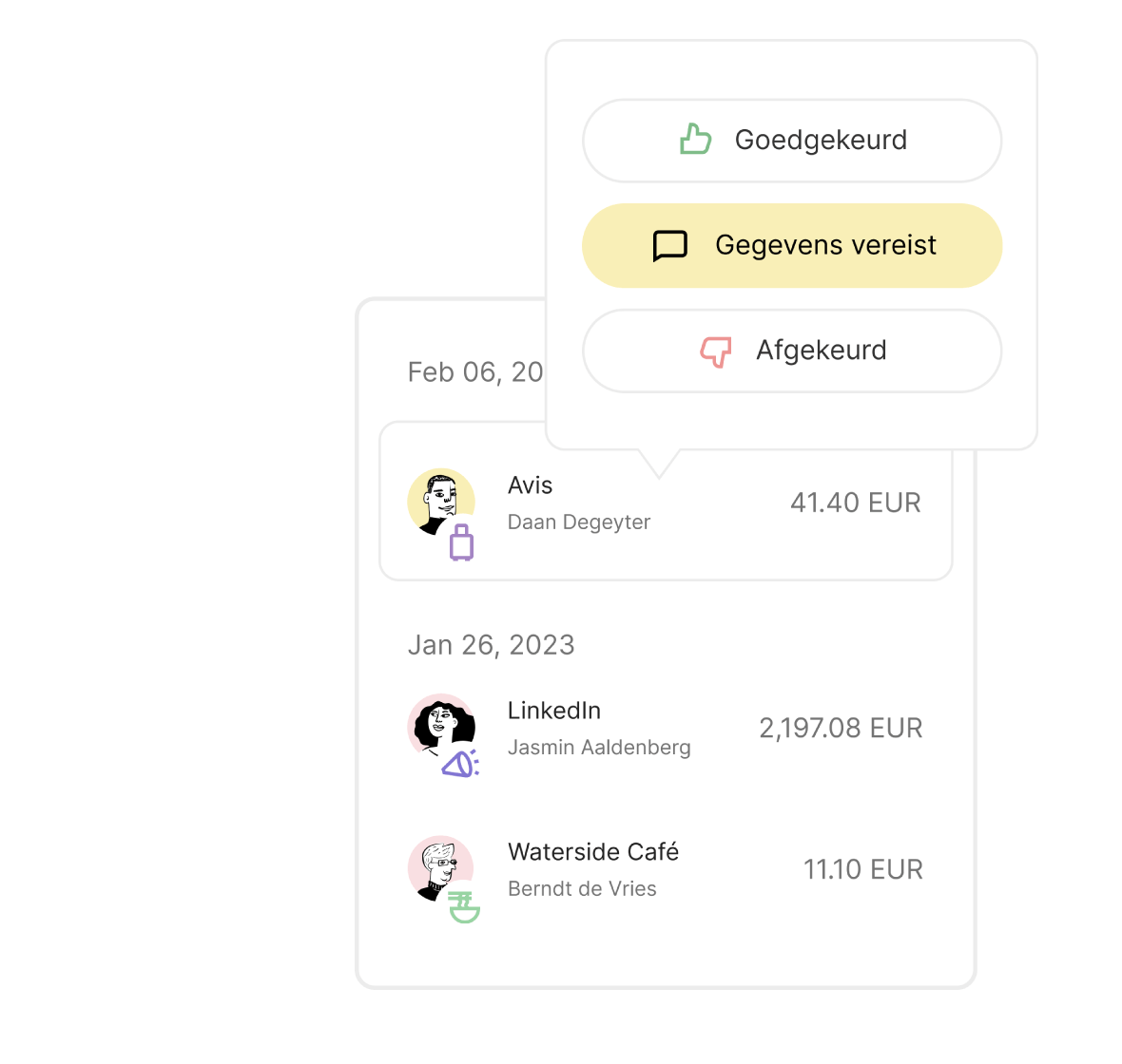 Van dagelijkse zakelijke uitgaven tot softwareabonnementen; met onze rapporten krijg je direct een duidelijk overzicht van de uitgaven van je bedrijf. Beoordeel de gegevens in realtime. Als er gegevens ontbreken, kun je in een paar klikken om meer informatie vragen.