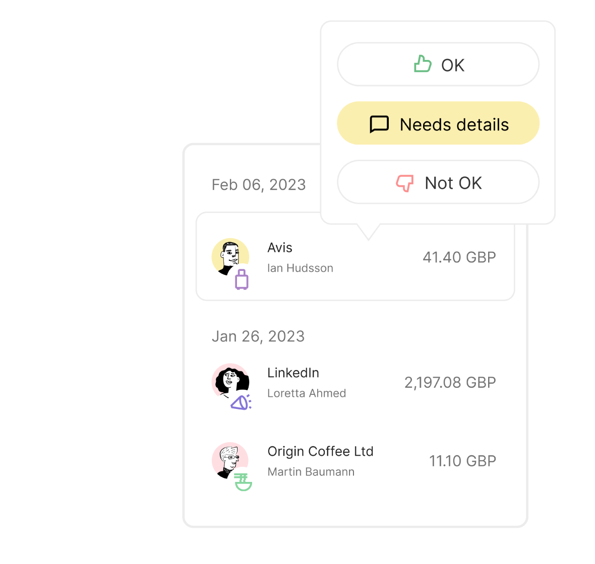 From daily business expenses to software subscriptions, get instant visibility of all your company spend with our reports. Review the details in real-time, and if something's missing, ask for more information in just a few clicks.
