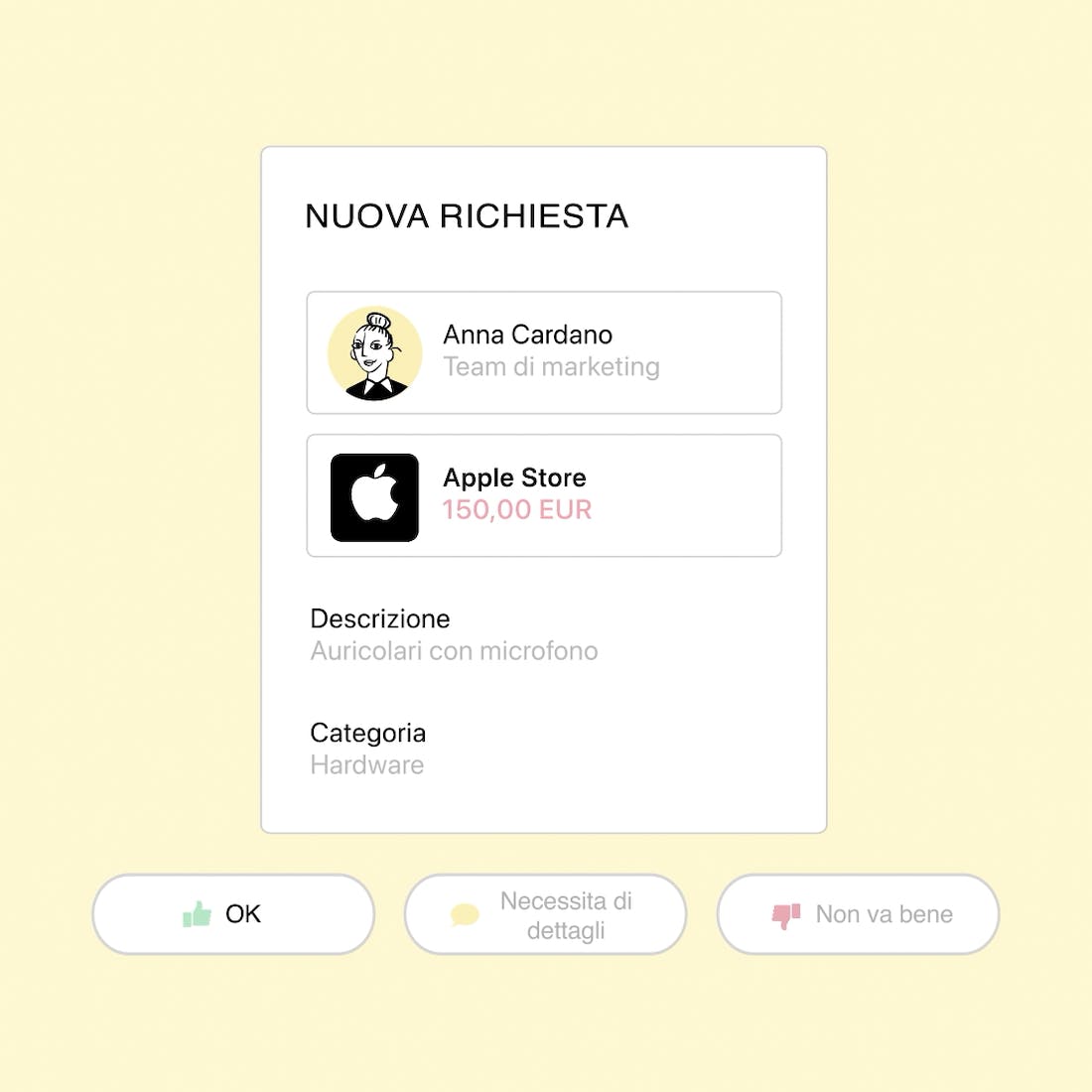 Gli amministratori ricevono informazioni dettagliate su ogni acquisto. C’è qualcosa che non ti convince? Basta segnalarlo con un tocco oppure, se necessario, bloccare la carta.