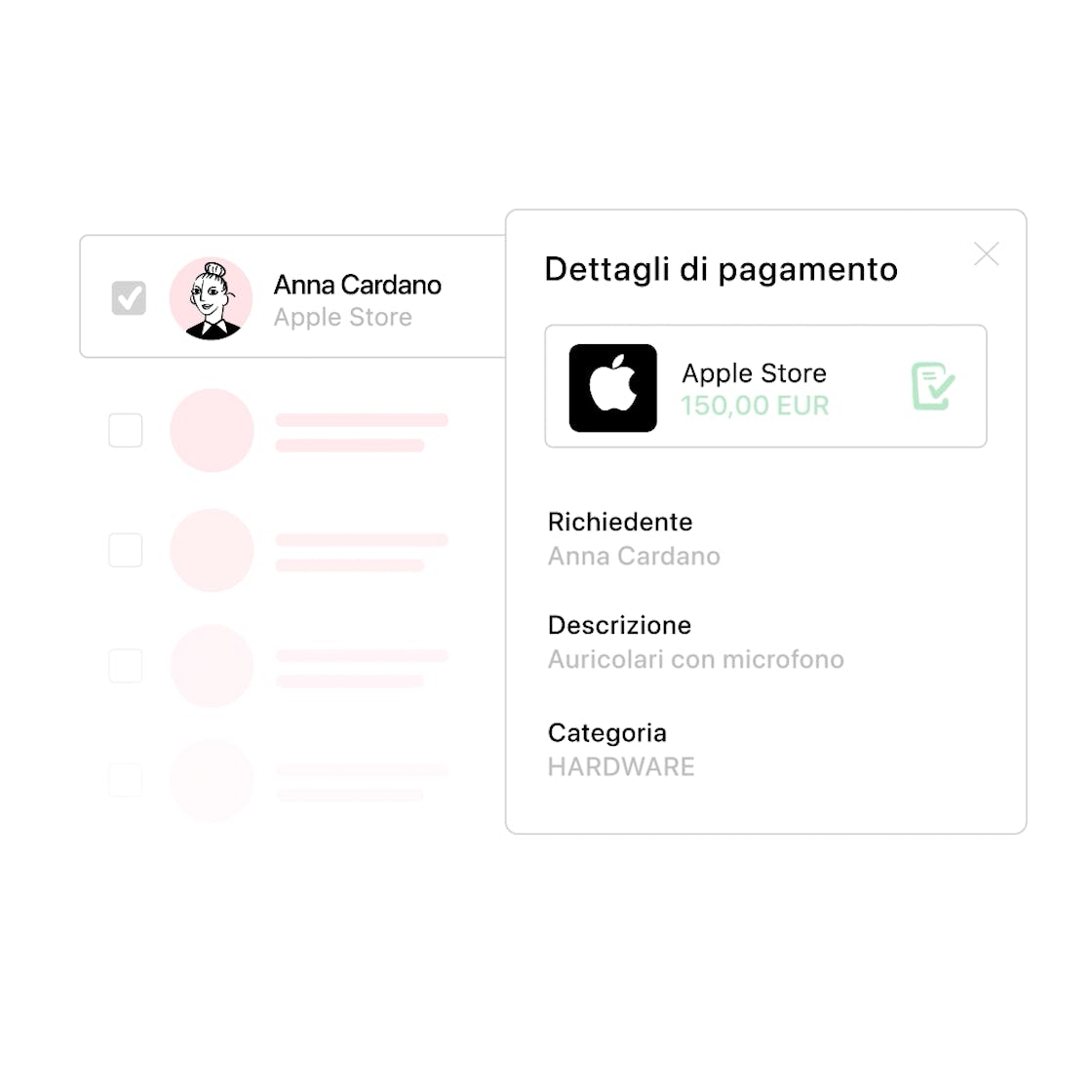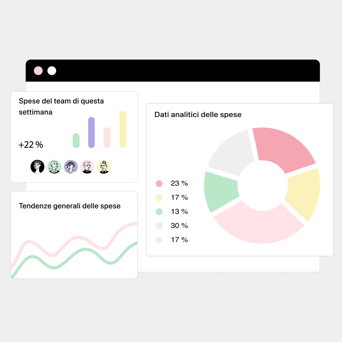 Assegna carte aziendali intelligenti ai membri del tuo team, con limiti di spesa individuali. Consentirai loro di fare gli acquisti necessari, mentre noi ci occupiamo automaticamente della documentazione.